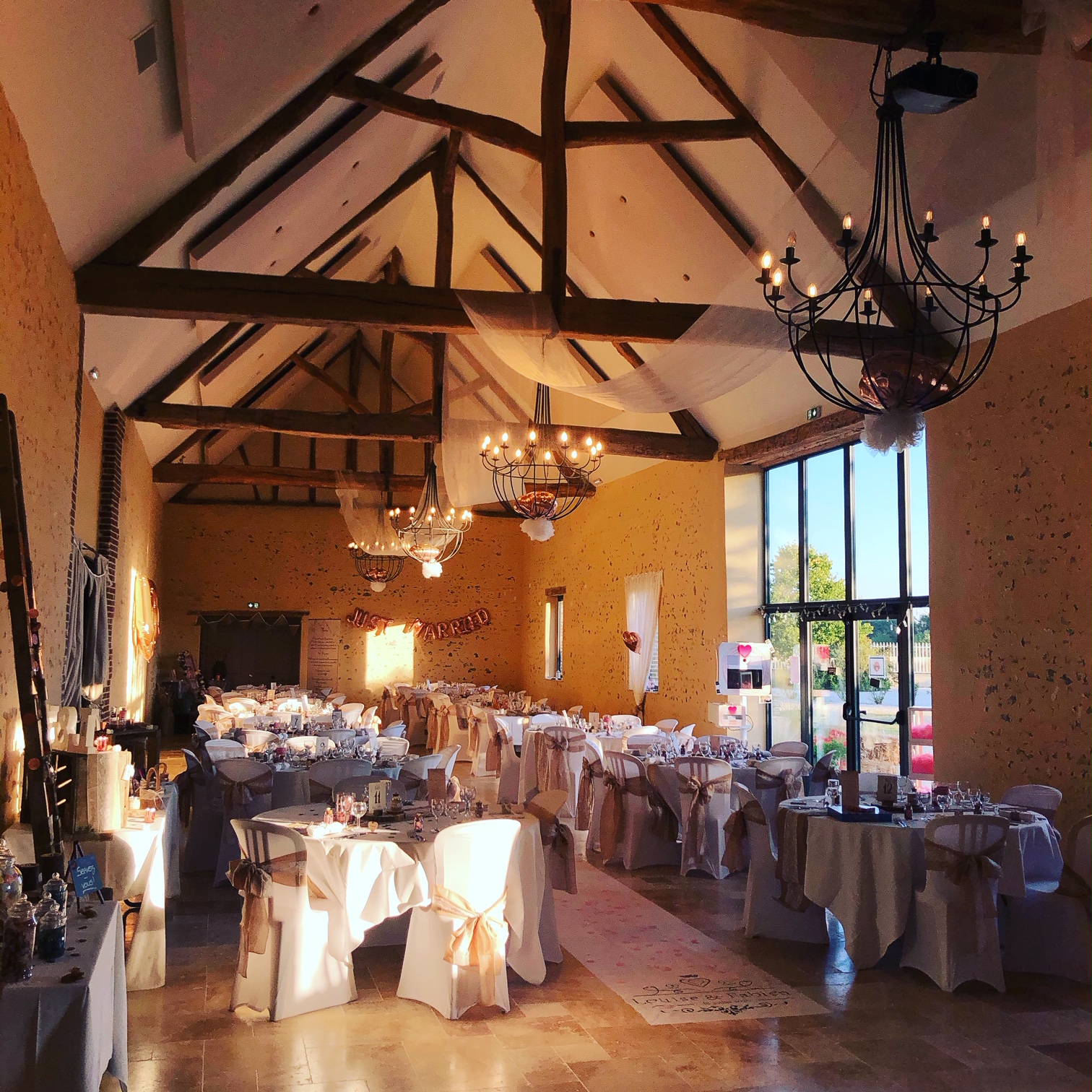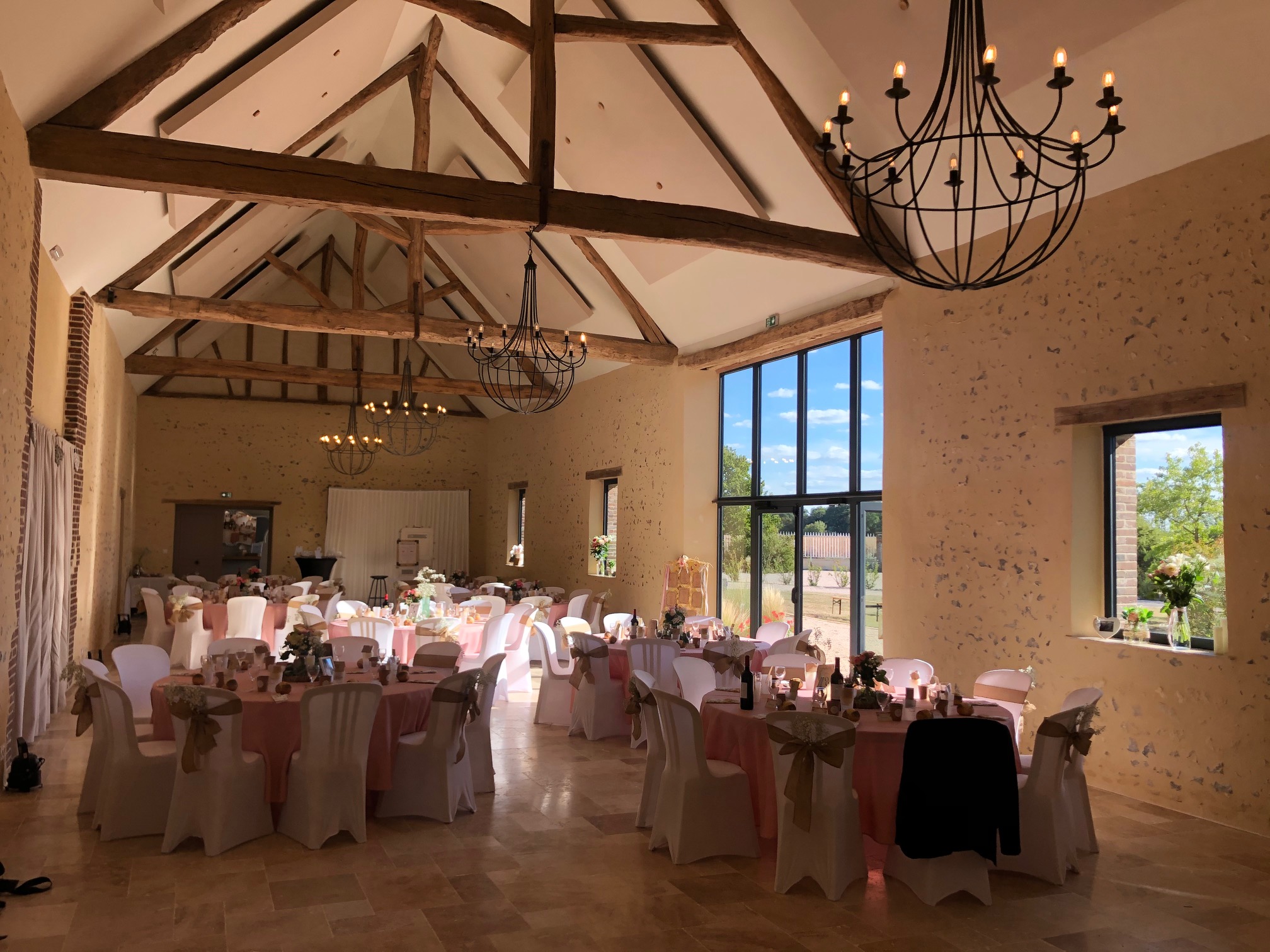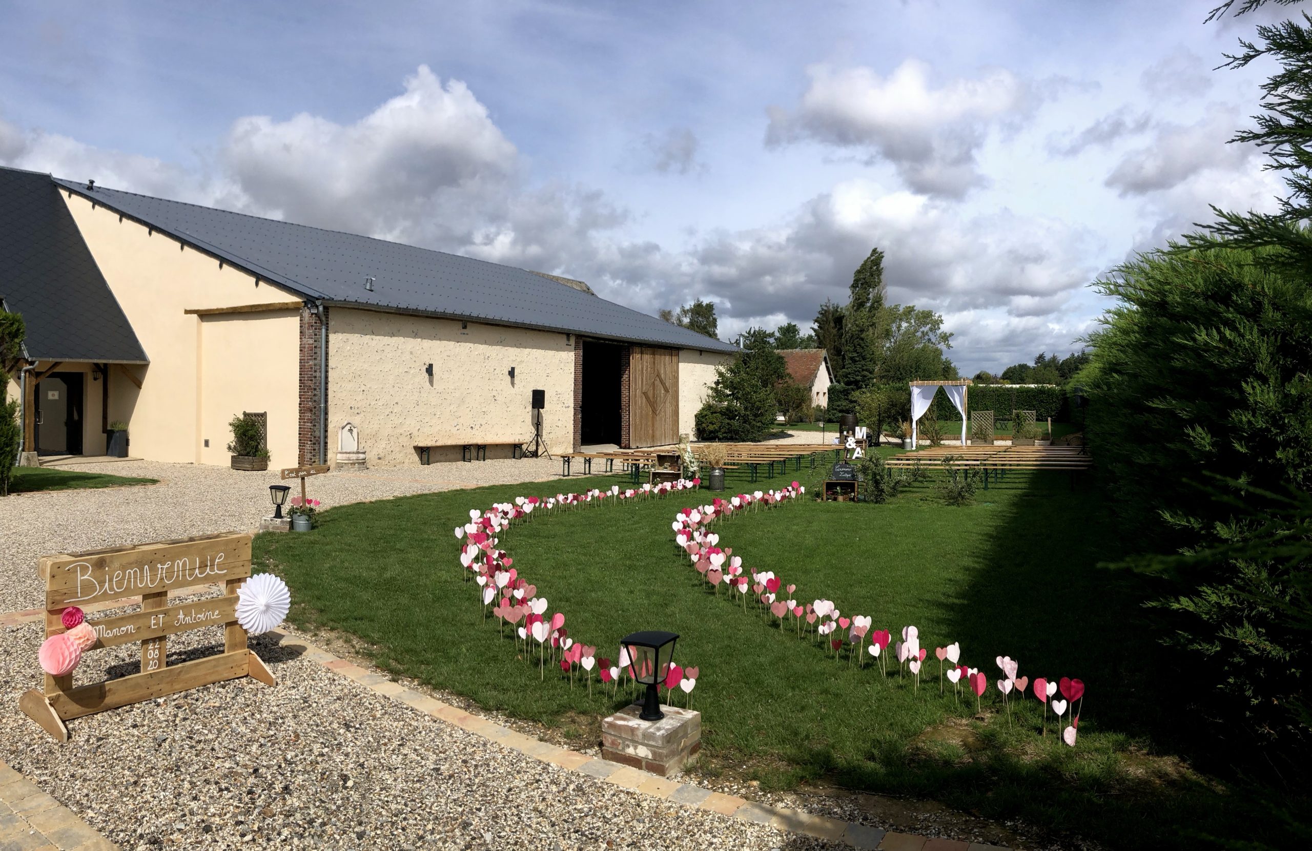 Depuis Mai 2019, notre grange entièrement transformée vous offre un espace de réception pouvant accueillir jusqu’à 160 personnes assises. Un espace traiteur, un parking, un espace vestiaire-détente, un grand jardin et un vaste préau attenant pour abriter vos cocktails en fonction des conditions météo sont à votre disposition.